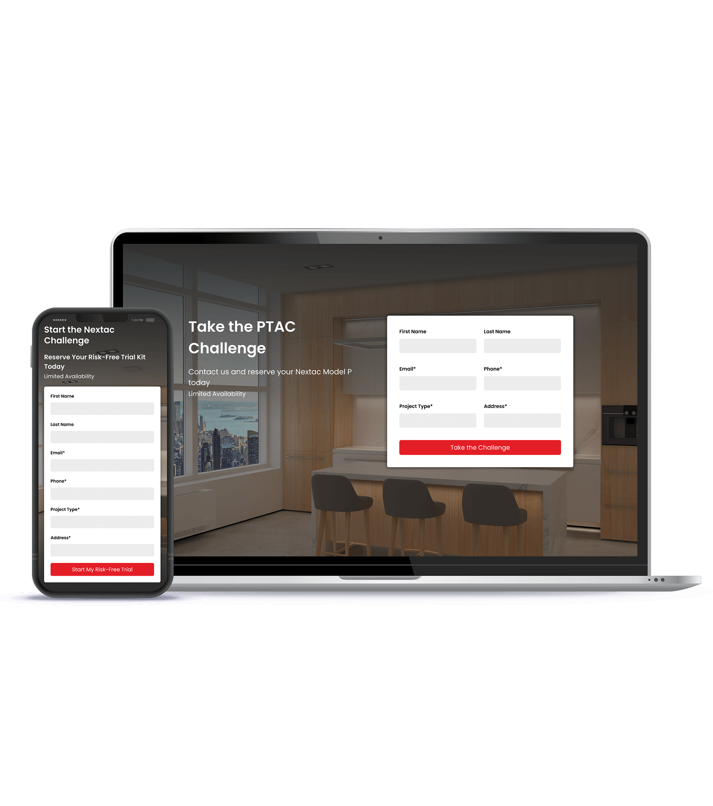 The PTAC Challenge is open to all facilities with a standard 42” x 16” PTAC sleeve, including hotels, multifamily units, senior living communities, and healthcare centers. Please ensure you have a 230 V and 15 A circuit available for the Nextac.