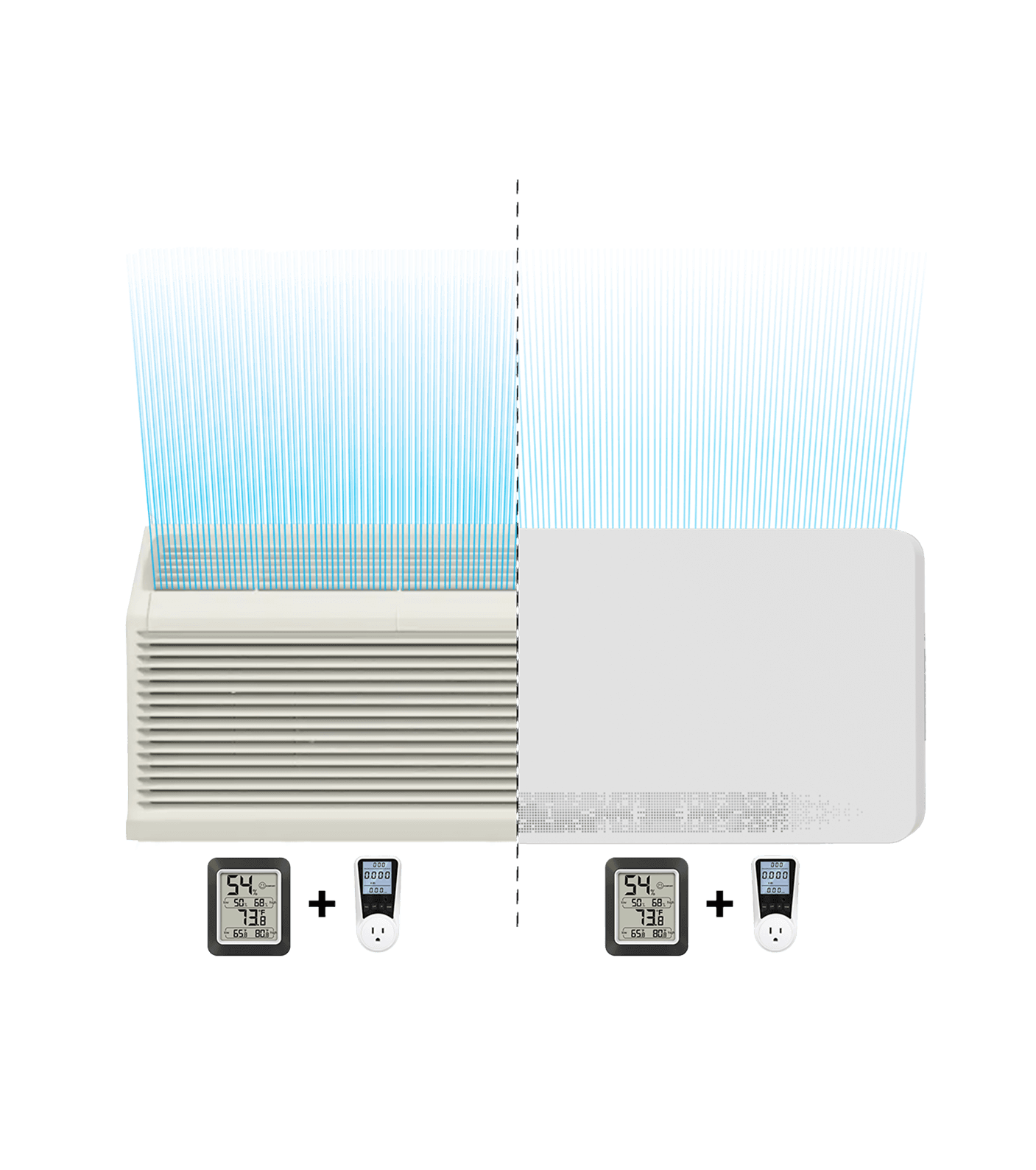 The PTAC Challenge comes with everything you need: a Nextac Model P, kilowatt testers, and temperature sensors. Install a Nextac in one room and compare its performance to your existing PTAC running in a similarly sized room throughout the test. Run both rooms under normal conditions for at least 24 hours, and the testers will automatically capture the energy use and comfort data.